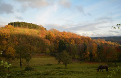 Our house in Nettersheim-Holzmülheim is surrounded by forest and grassy meadows and is easily reached via the A1 road. A riding arena is also available. The softly undulating countryside of the Eiffel region provides an inviting backdrop for long walks or rides.